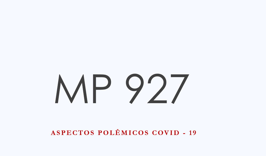 A Medida Provisória 927 ingressou no universo jurídico trazendo muitas perguntas e questionamentos, especialmente sobre a constitucionalidade de diversos artigos. MP 927 – ASPECTOS POLÊMICOS